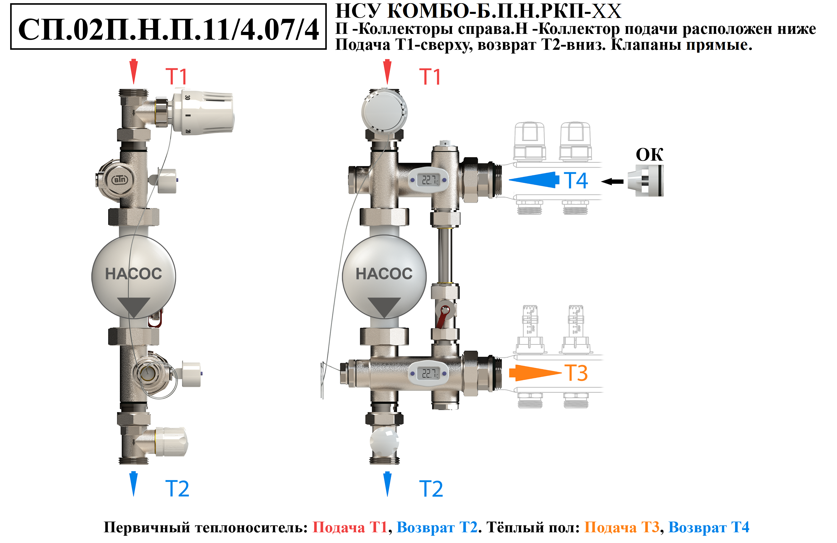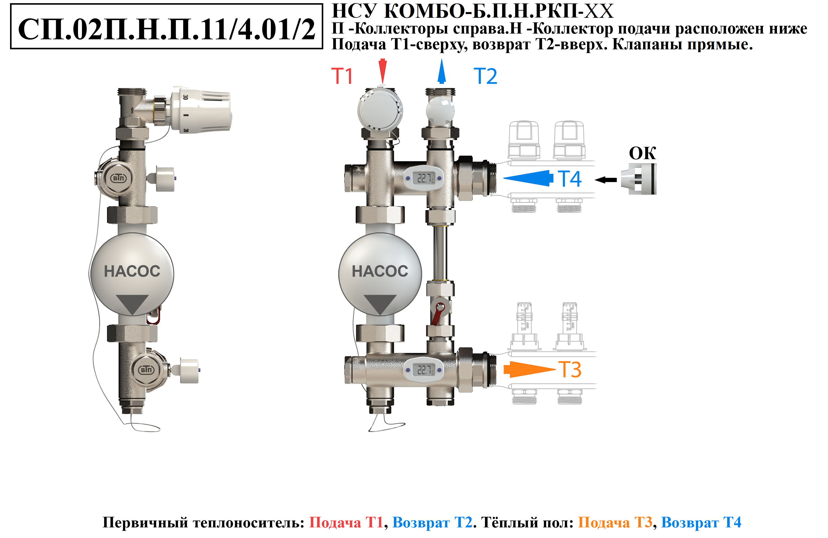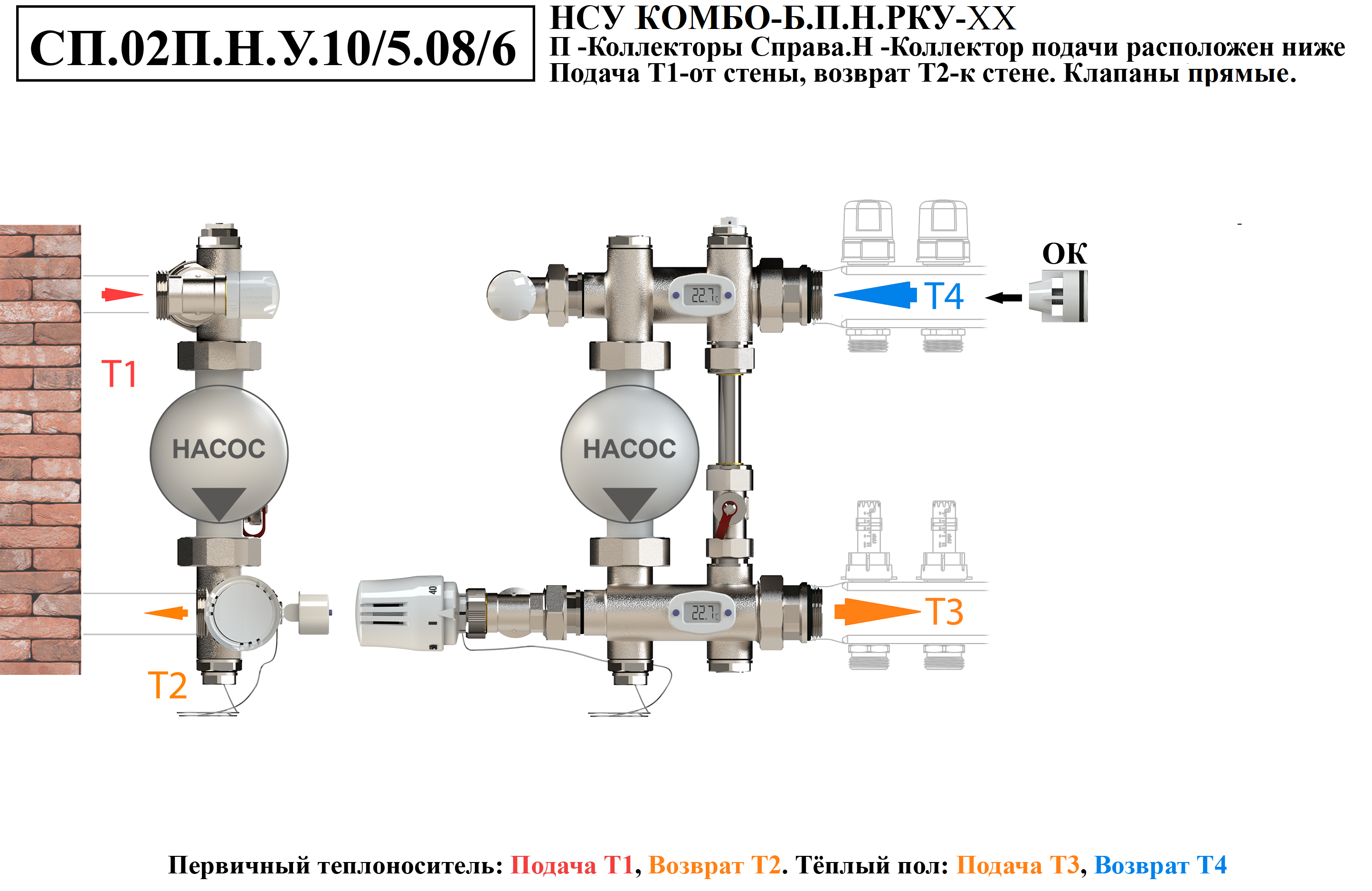 Схемы подключений насосно-смесительного узла КОМБО-Б.