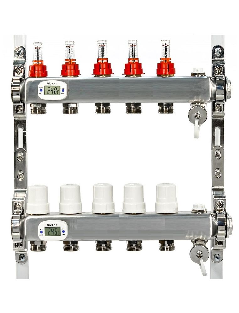 Коллекторная группа ВТП 5 выходов, нержавеющая сталь, с расходомерами tn, электронными термометрами, воздухоотводчиками