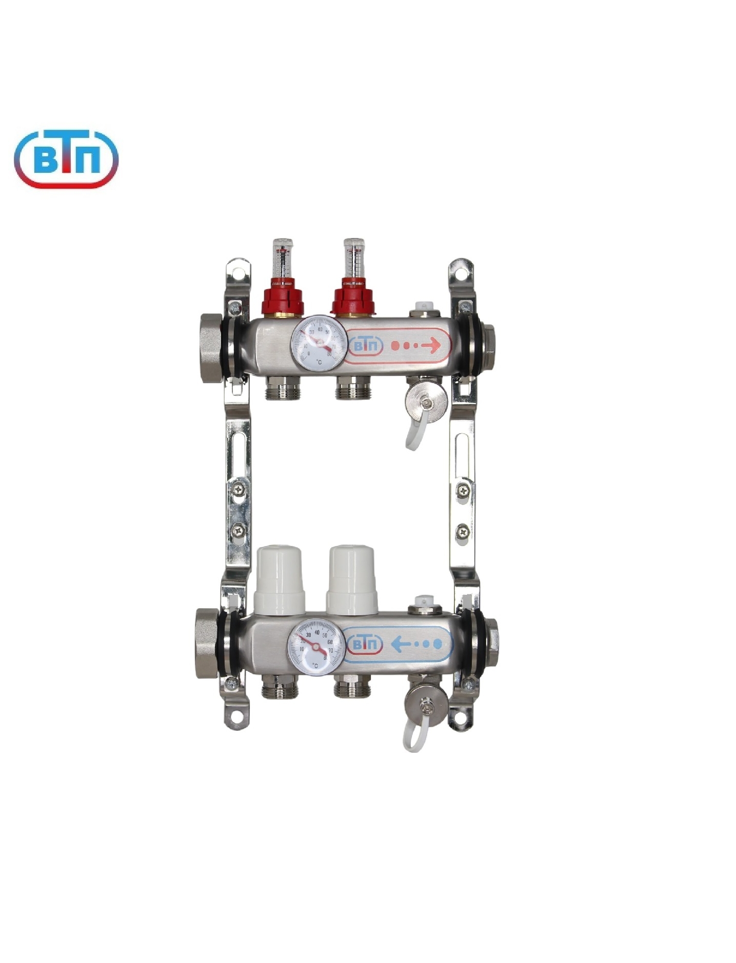 Коллекторная группа 2 контура, накидные гайки 1.1/4" слева, БМ термометры А40.Ртн.02.НГ/ВР.БТ ВТП