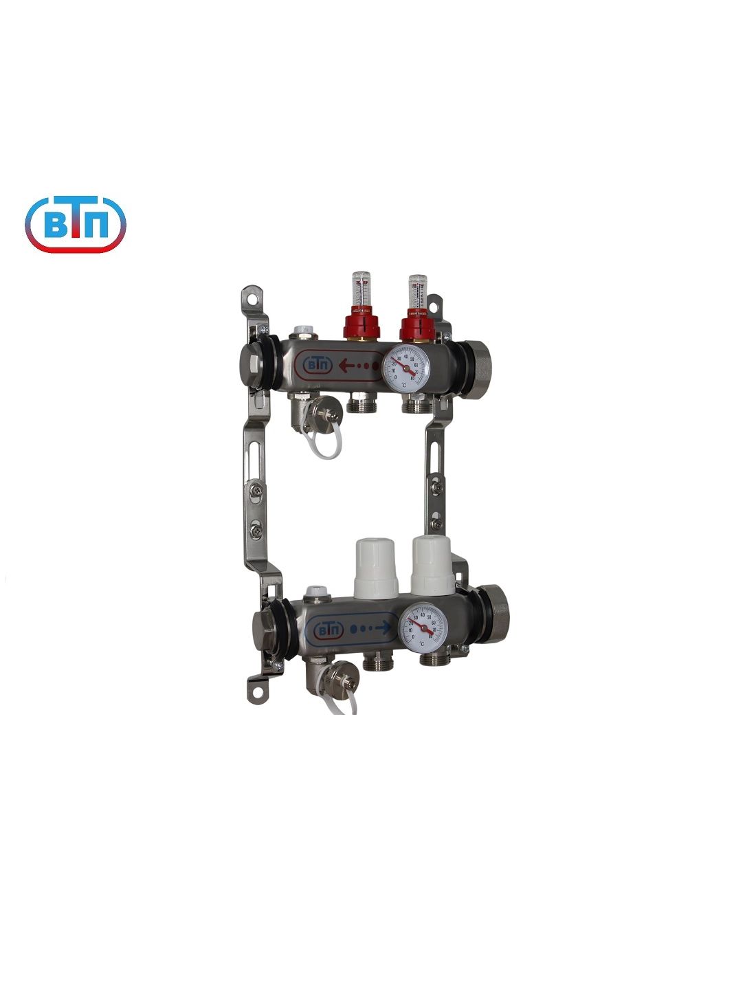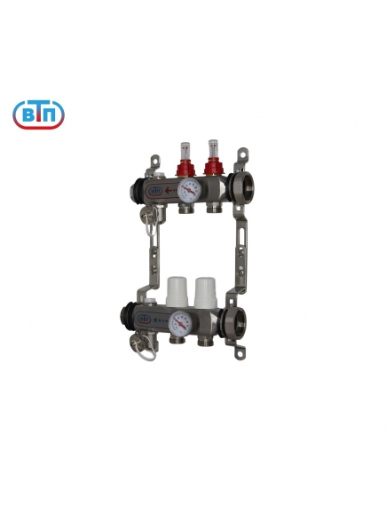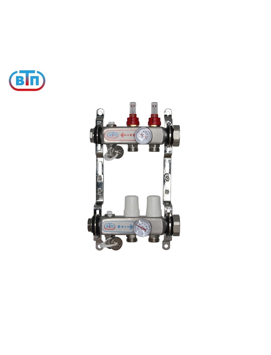 Коллекторная группа 2 контура, накидные гайки 1.1/4" справа, БМ термометры А40.Ртн.02.ВР/НГ.БТ ВТП