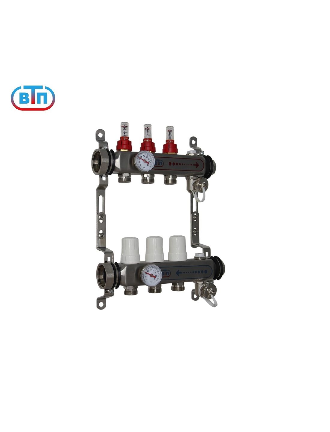 Коллекторная группа 3 контура, накидные гайки 1.1/4" слева, БМ термометры А40.Ртн.03.НГ/ВР.БТ ВТП