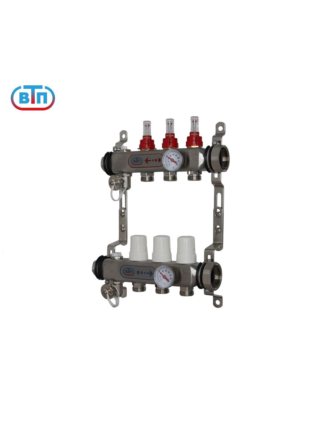 Коллекторная группа 3 контура, накидные гайки 1.1/4" справа, БМ термометры А40.Ртн.03.ВР/НГ.БТ ВТП