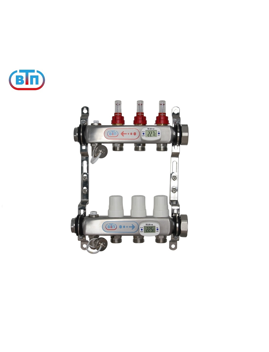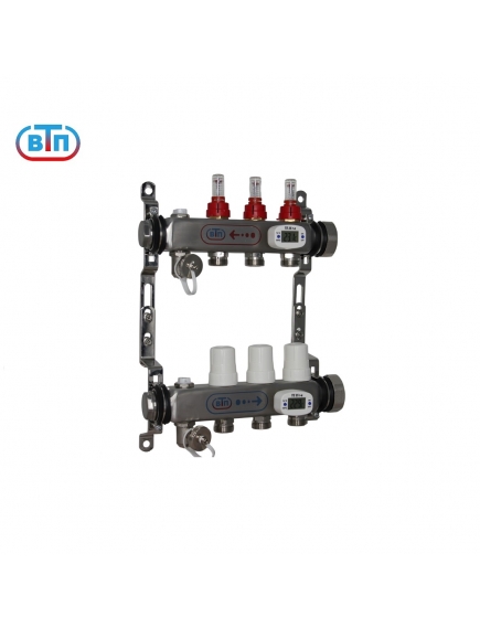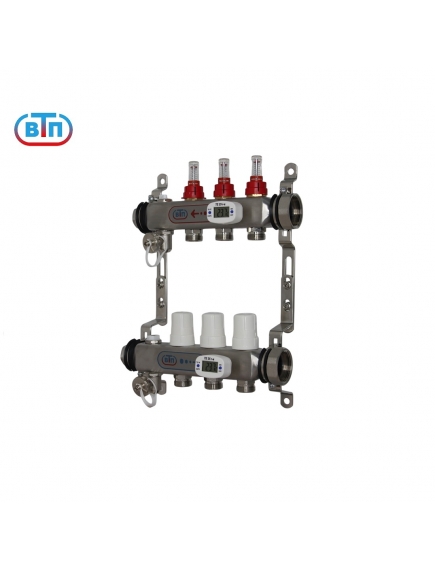 Коллекторная группа 3 контура, накидные гайки 1.1/4" справа, электронные термометры А40.Ртн.03.ВР/НГ.ЭТ ВТП
