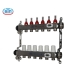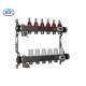 Из нержавеющей стали. Расходомеры "Taconova" (Швеция). Электронные термометры ТЕ25r/a, с шагом измерений 0,1гр.С. С левой стороны заглушки 1", надежные ручные воздухоспускники, поворотные дренажные клапаны (никелированная латунь). Раздвижные кронштейны. Выход каждого контура снабжён регулирующим вентилем с резьбовым монтажным элементом, предназначенным для установки сервопривода или термоголовки с резьбой М30х1,5. Для присоединения трубопроводов выводы коллекторов выполнены с геометрией для подключения соединителей стандарта «Евроконус».