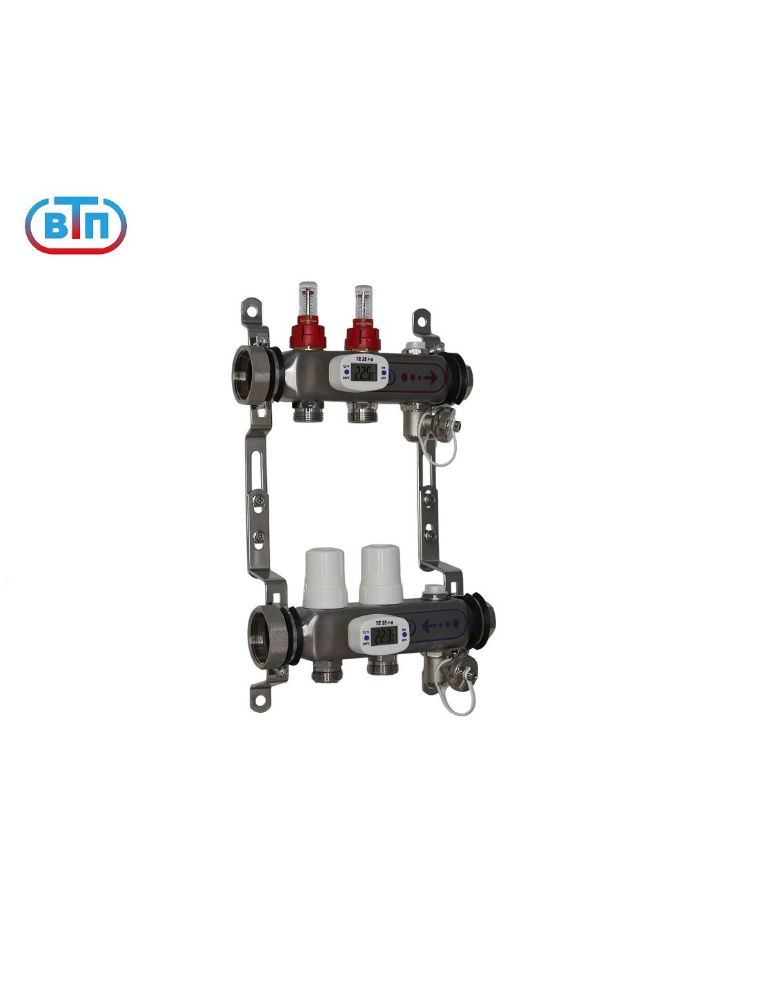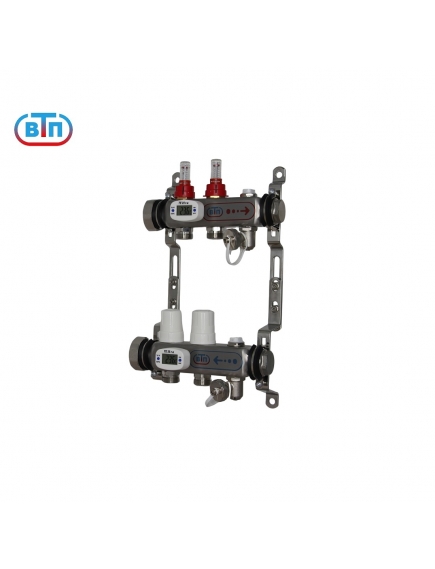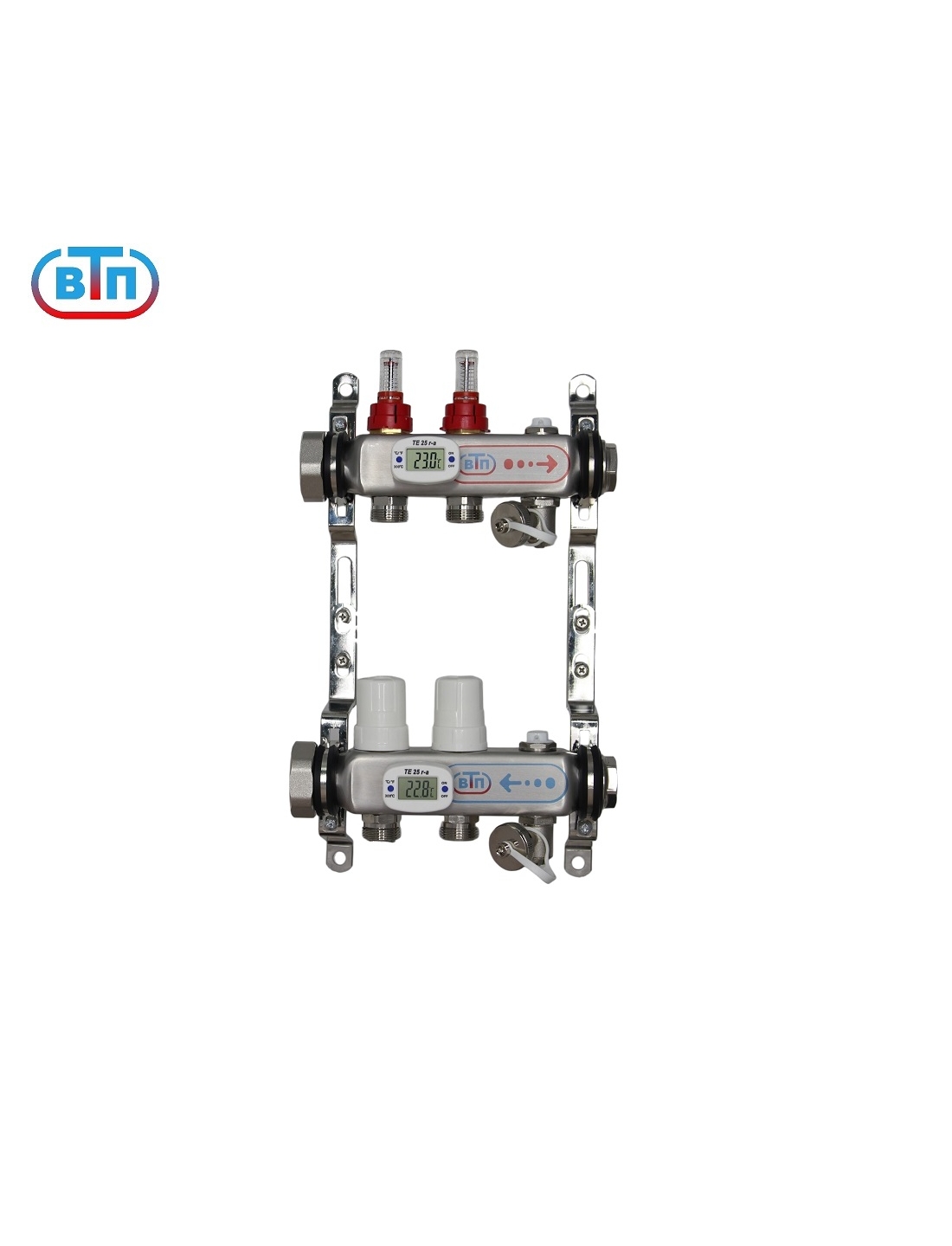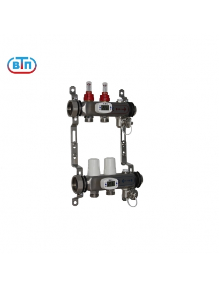Коллекторная группа 2 контура, накидные гайки 1.1/4" слева, электронные термометры А40.Ртн.02.НГ/ВР.ЭТ ВТП