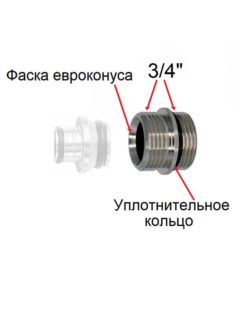 Адаптер переходник с одной стороны наружная резьбы 3/4" с другой стороны наружная резьба 3/4" стандарта евроконус. Подходит для любых соединений данного стандарта.