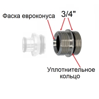 Переходник адаптер 3/4" наружный + 3/4" EK с уплотнительным кольцом (никелированная латунь) ВТП