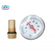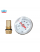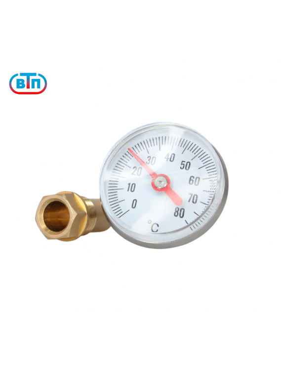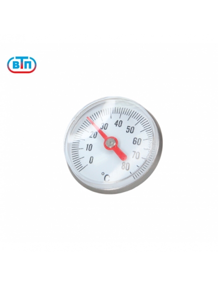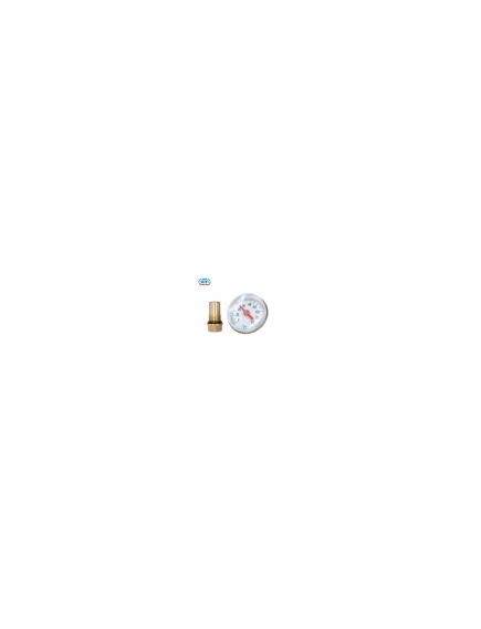 Аналоговый биметаллический термометр с гильзой имеет погружную гильзу с наружной резьбой 1/4" и диаметр корпуса 40 мм. Предназначен для измерения температуры до 80С. Такие термометры используются в большинстве оборудования касающегося теплых водяных полов. Гильза закручивается в отверстие диаметром 1/4", а сам прибор вставляется в нее.