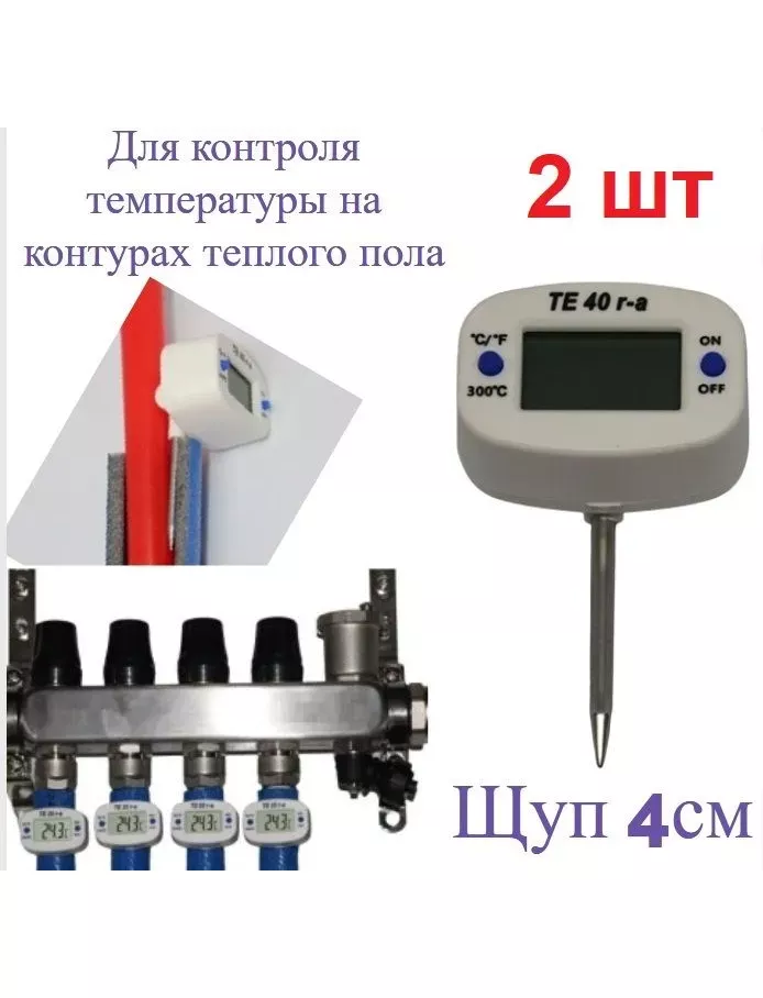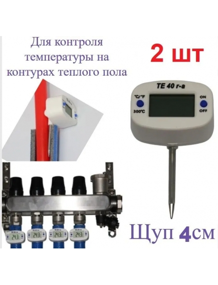 Удобен при балансировке контуров (петель) напольных систем отопления. Оптимальная длина щупа позволяет закрепить щуп термометра за теплоизоляцией труб, перед коллектором возврата теплоносителя. Температура на выходе из контуров тёплого пола отражает количество потребляемого контуром тепла. Для повышения точности измерений на поверхностях, рекомендуется уменьшить влияние температуры воздуха используя теплоизоляцию. Обеспечивает точное измерение температуры трубы путем помещения щупа от термометра в произвольно сделанное отверстие на трубной изоляции теплоизоляции