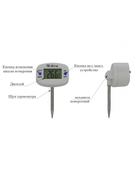 Электронный термометр состоит из измерительного щупа, выполненного из высококачественной нержавеющей стали, и корпуса дисплея, выполненного из термостойкого пластика.
