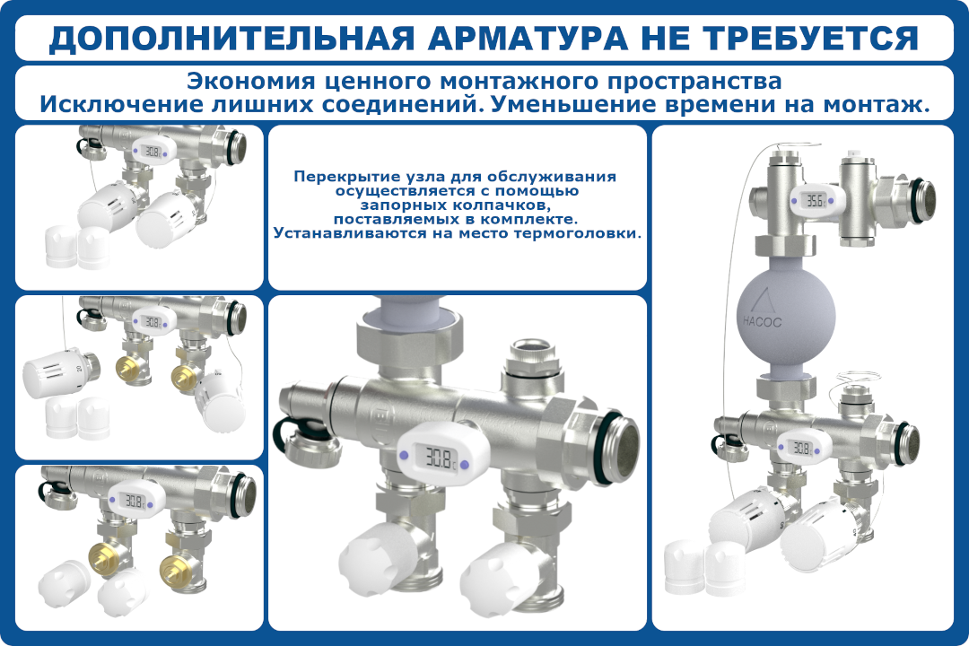 КО ВТП КОМБО-ТА.Л-2 контура, комплект коллекторов теплого пола, ТА НСУ с частотным насосом PUMPMAN