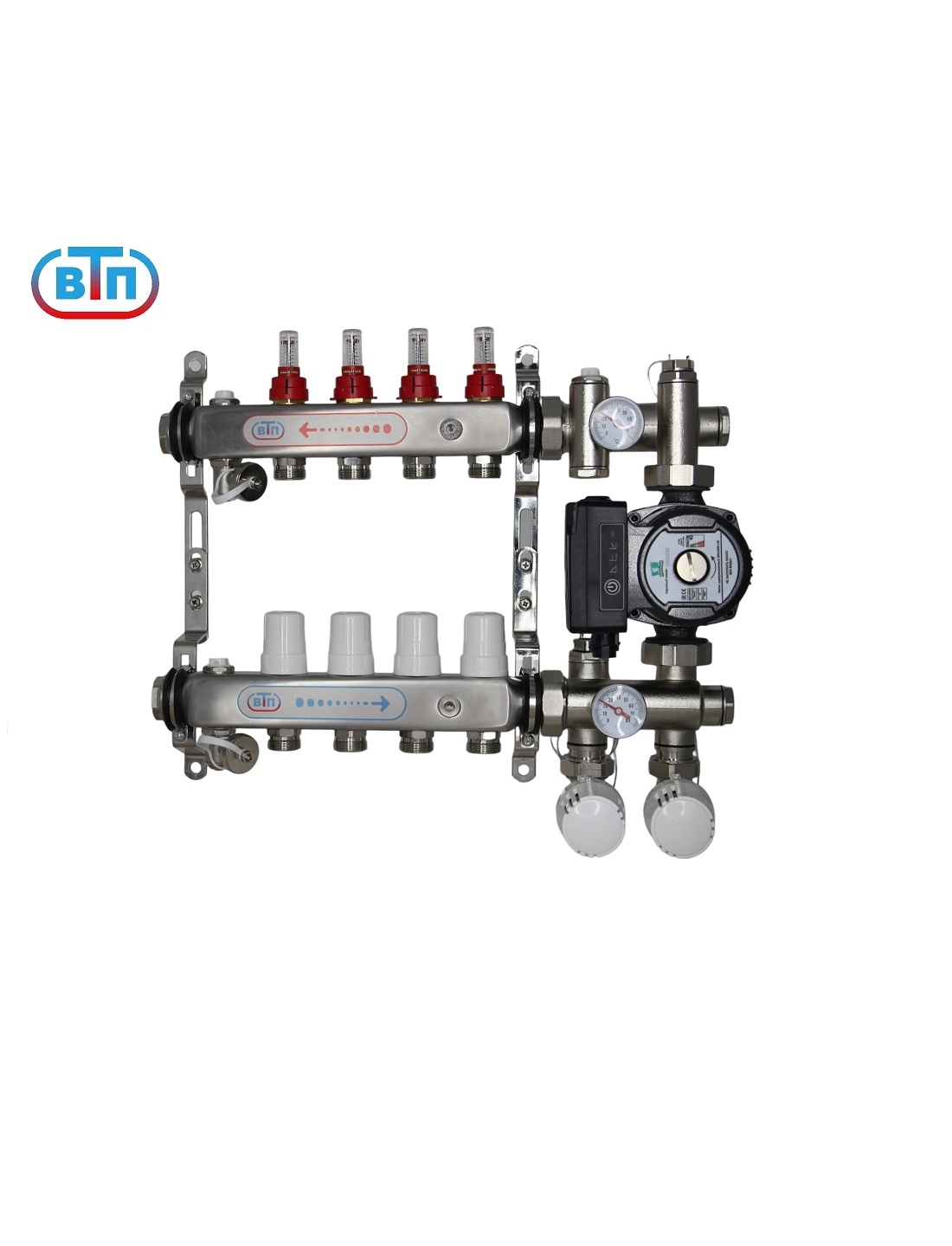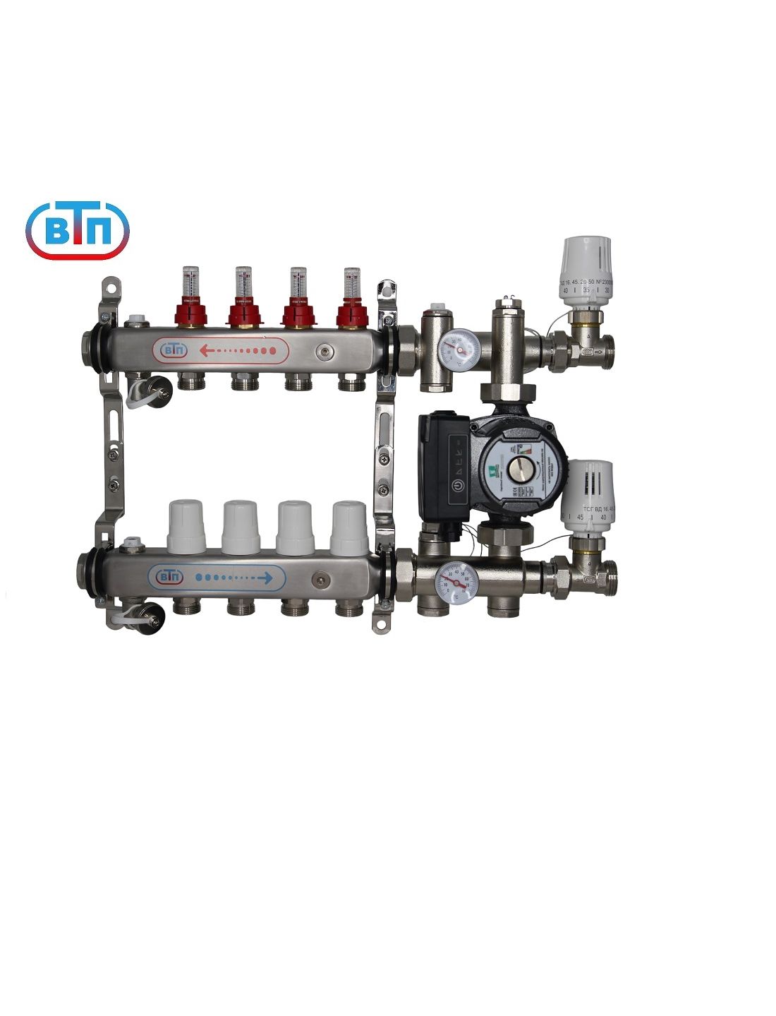 Полный коллекторный комплект -обвязка для водяного теплого пола ВТП КОМБО-ТА.Л 4 контура с термоадаптивным насосно-смесительным узлом