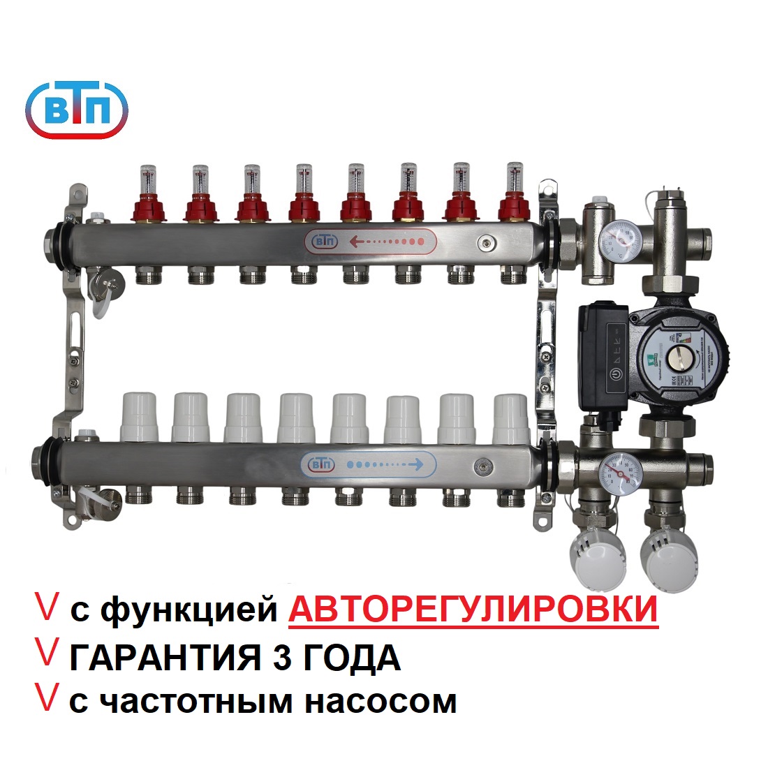 КО ВТП КОМБО-ТА.Л-8 контуров, комплект коллекторов теплого пола, ТА НСУ с частотным насосом PUMPMAN