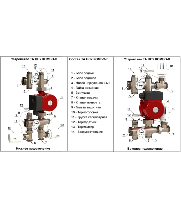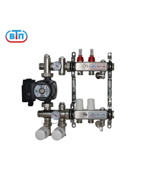 1. смесительный узел с 2 прямыми регулирующими вентилями РКП-20а и 2 термоголовками ТСГ ВД, с биметаллическими термометрами.