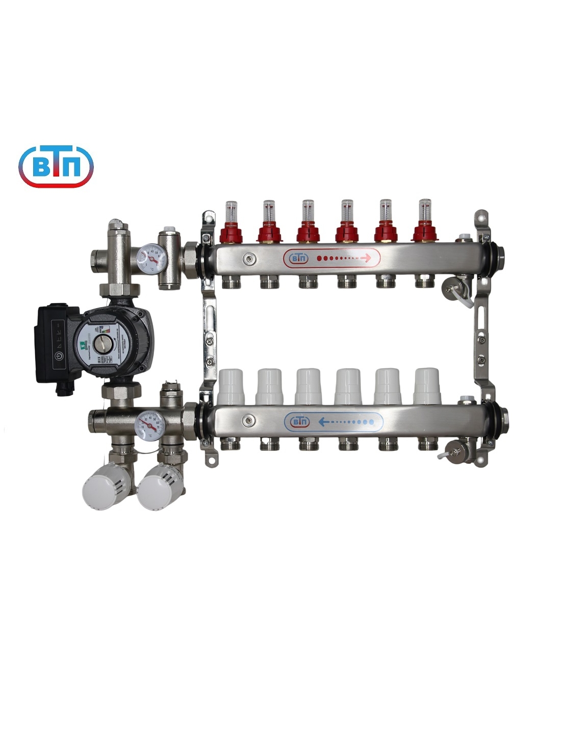 КО ВТП КОМБО-ТА.П-6 контуров, комплект коллекторов теплого пола, ТА НСУ с частотным насосом PUMPMAN