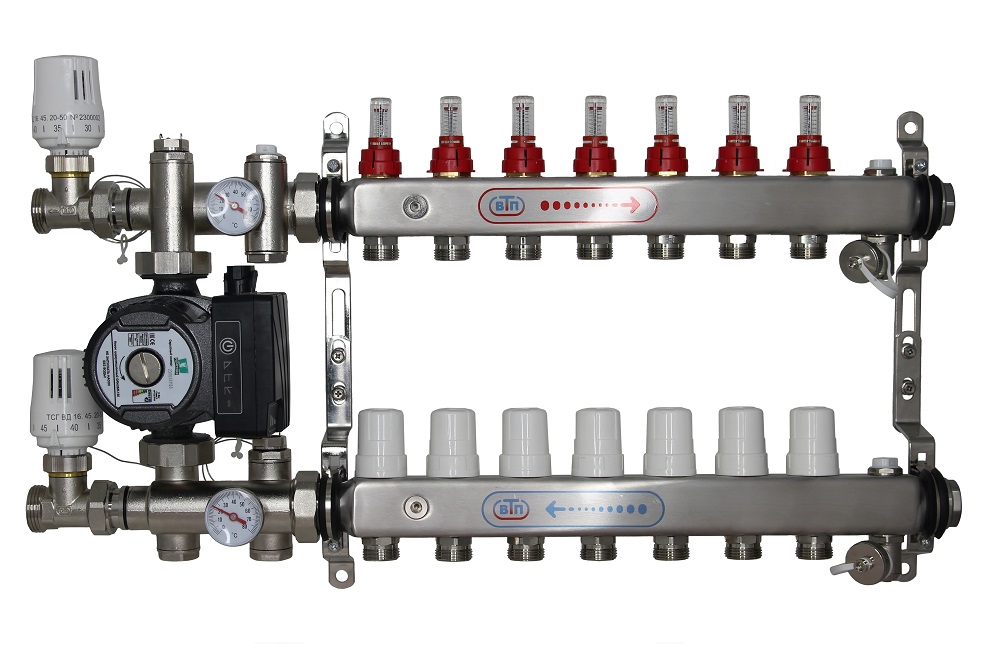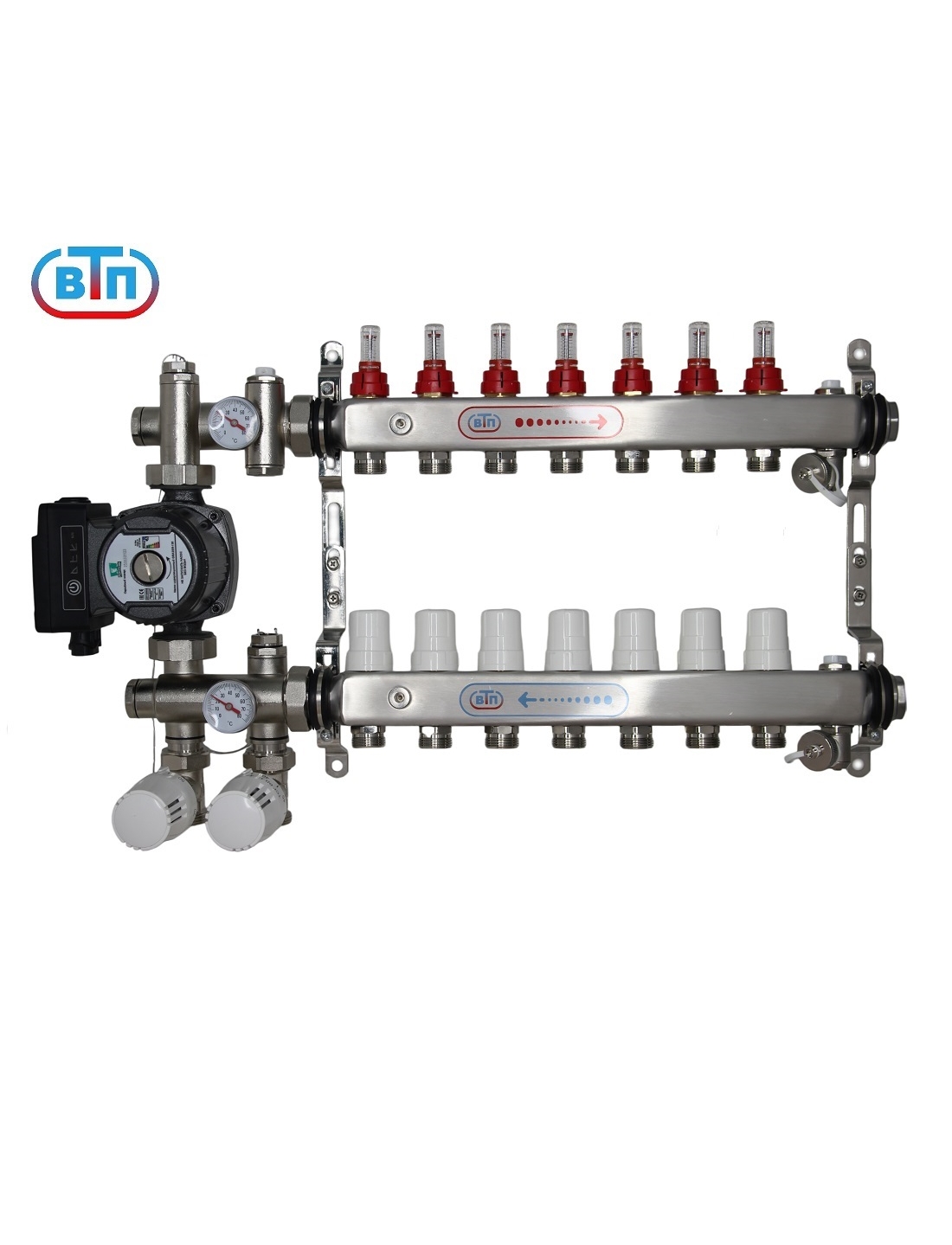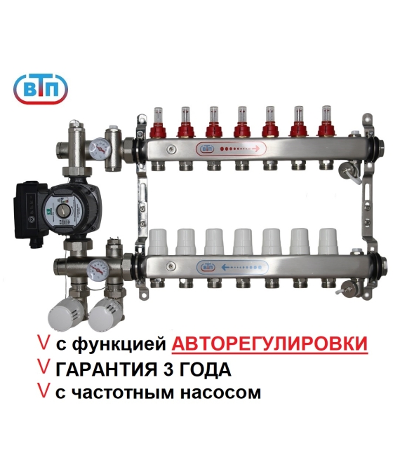 КО ВТП КОМБО-ТА.П-7 контуров, комплект коллекторов теплого пола, ТА НСУ с частотным насосом PUMPMAN