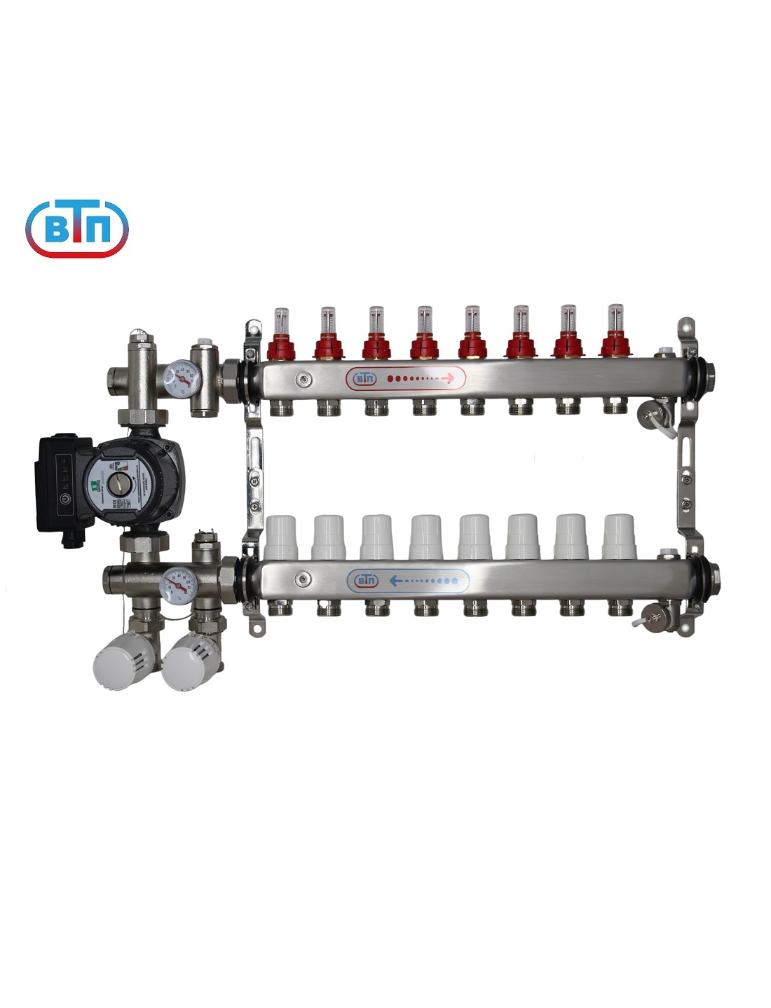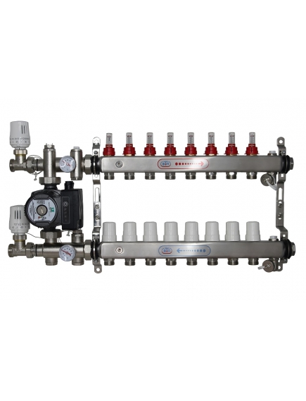 Полный коллекторный комплект -обвязка для водяного теплого пола ВТП КОМБО-ТА.П 8 контура с термоадаптивным насосно-смесительным узлом