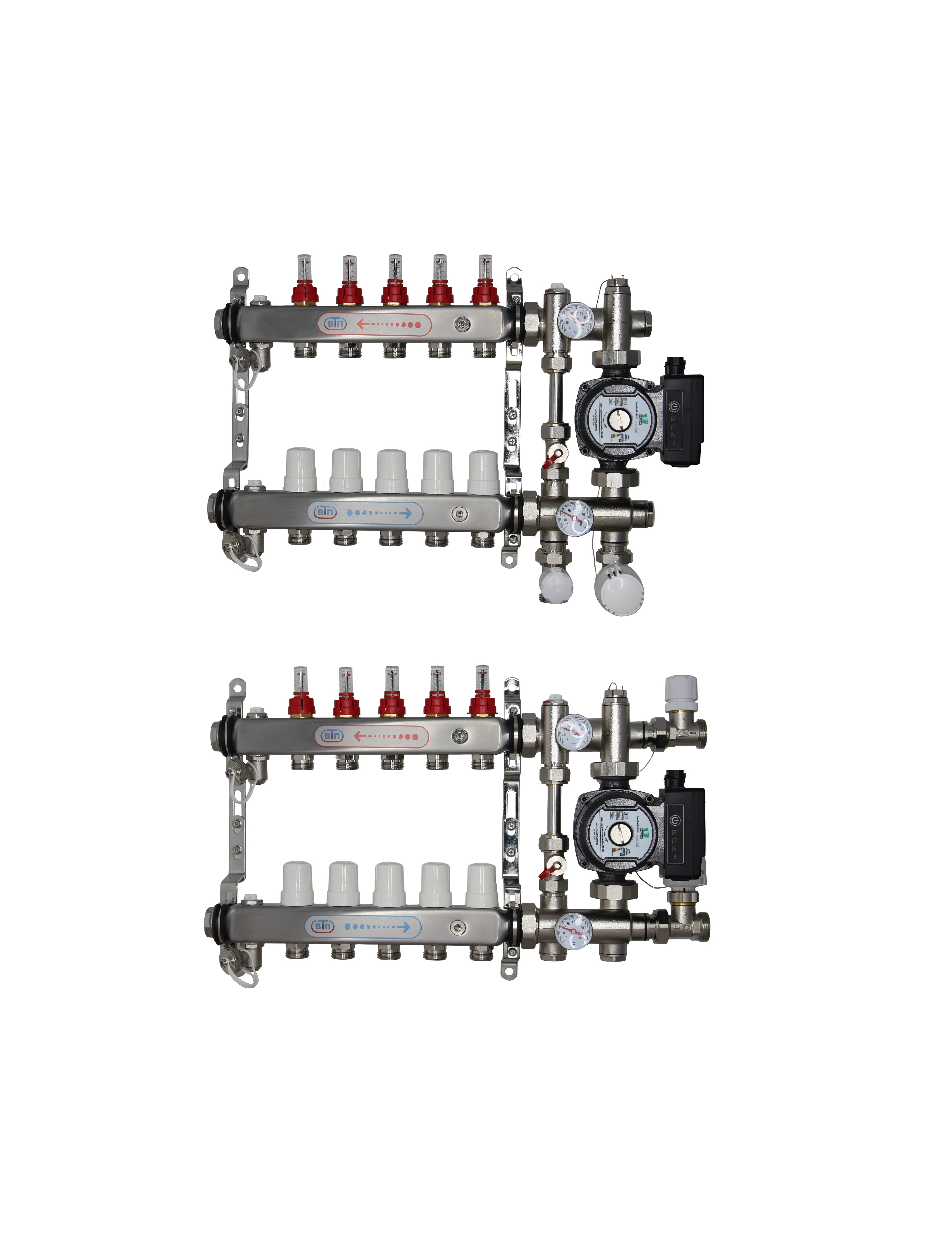КО ВТП КОМБО-Б.Л-5 (с байпасом), комплект коллекторов теплого пола на 5 контура слева от смесительного узла + частотный насос PUMPMAN