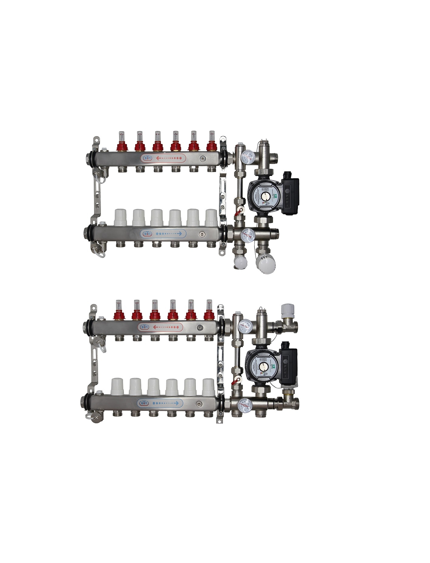 КО ВТП КОМБО-Б.Л-6 (с байпасом), комплект коллекторов теплого пола на 6 контура слева от смесительного узла + частотный насос PUMPMAN