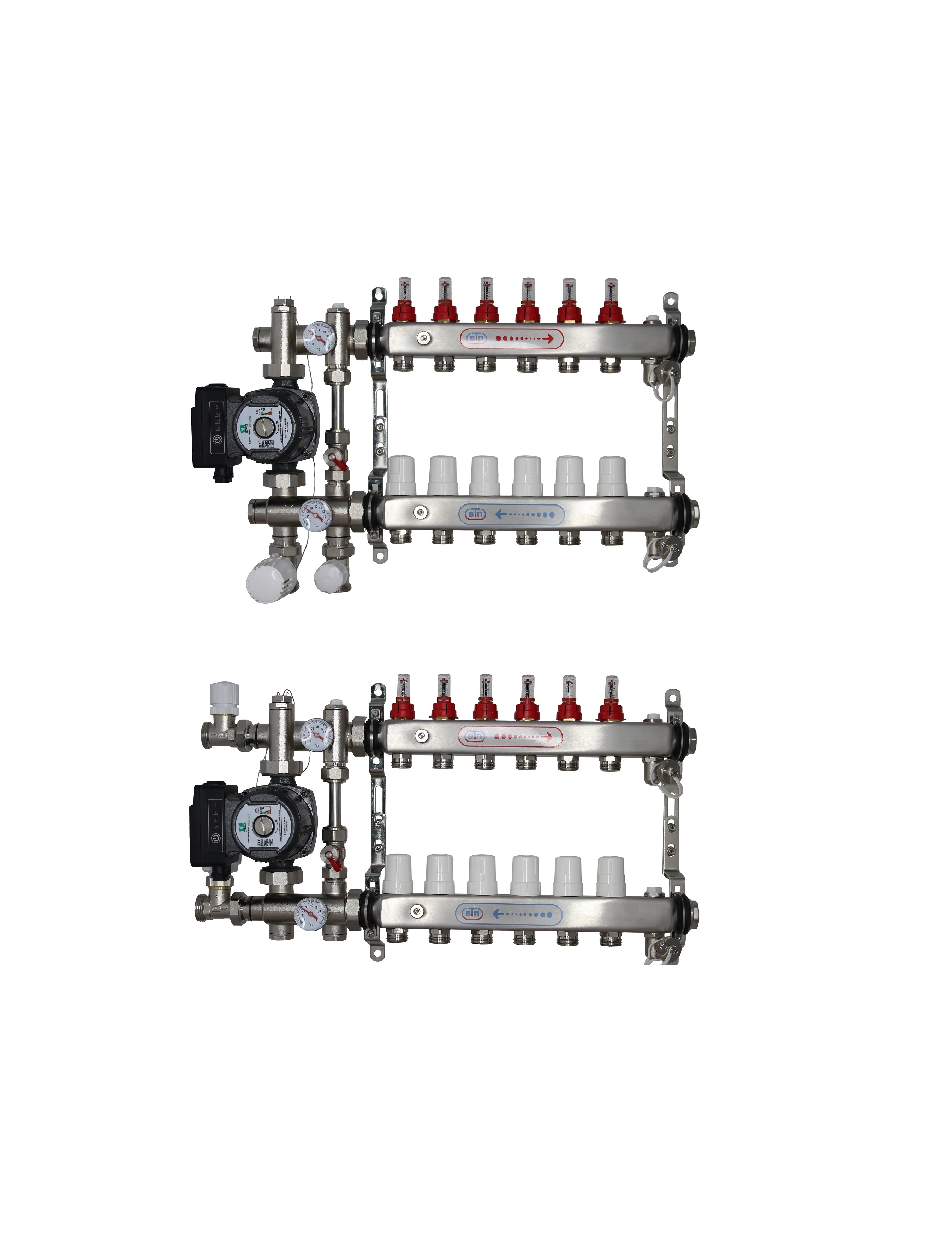 КО ВТП КОМБО-Б.П-6 (с байпасом), комплект коллекторов теплого пола на 6 контура справа от смесительного узла + частотный насос PUMPMAN