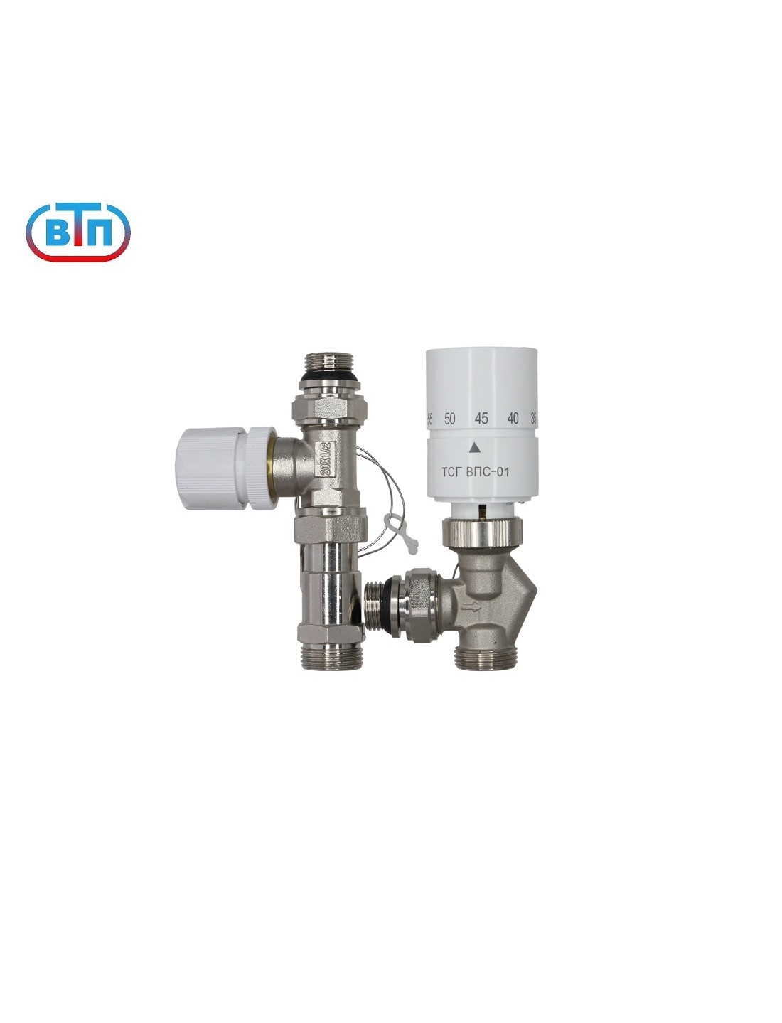Комплект состоит из 2 регулирующих клапанов и термостатической головки ТСГ ВПС-01 с выносным проточным датчиком-сенсором. Термостатическая головка соединена с датчиком посредством капиллярной трубки из нержавеющей стали.