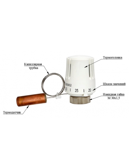 В корпусе термостатической головки находятся предохранительная пружина и сильфон, соединенный капиллярной трубкой длиной 0,5 м с термобаллоном.
