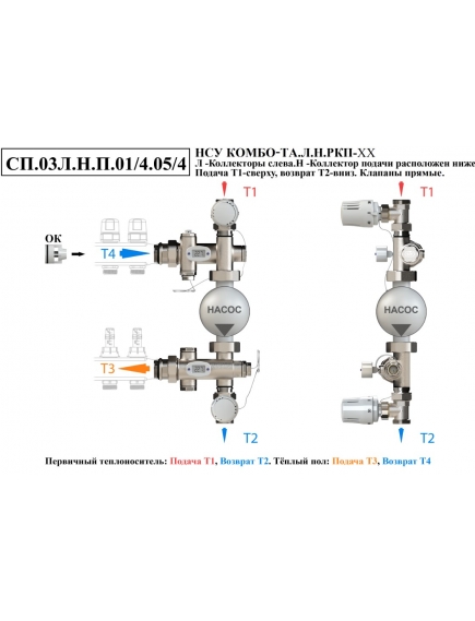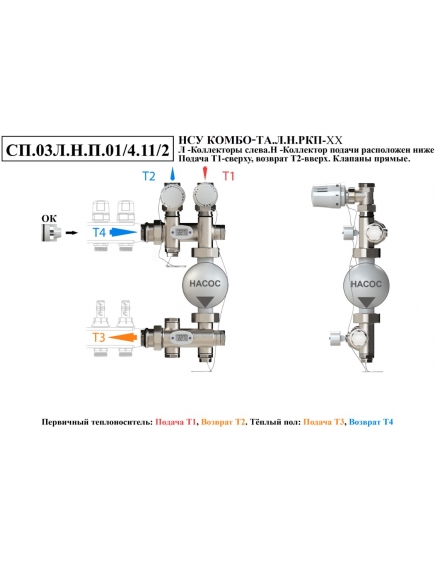 Насосно-смесительный узел НСУ КОМБО-ТА.Л.Н коллектор для теплого пола подключается слева, подающий нижний