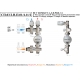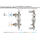 НСУ КОМБО-ТА.Л снабжён регулирующими клапанами подачи (7) и возврата (8), через которые он сообщается с подающей и обратной линиями теплоснабжающей магистрали или котла. Клапаны снабжены соединителями с накидной гайкой. Обаблока оснащены защитными гильзами (9) для установки термодатчиков (12). Каждый клапан снабжён термостатической головкой (10), соединенной через капиллярную трубку (11) с выносным термодатчиком (12). Наружные резьбы на торцах блоков подачии подмеса, предназначены для подключения распределительных коллекторов системы теплого пола. На лицевой и задней сторонах блоков реализованы резьбовые выводы с внутренней резьбой 1/4". На лицевой стороне через защитные гильзы (9) установлены термометры (13). В блоке подмеса, между защитной гильзой термодатчика (12) и циркуляционным насосом (3) встроен обратный клапан.