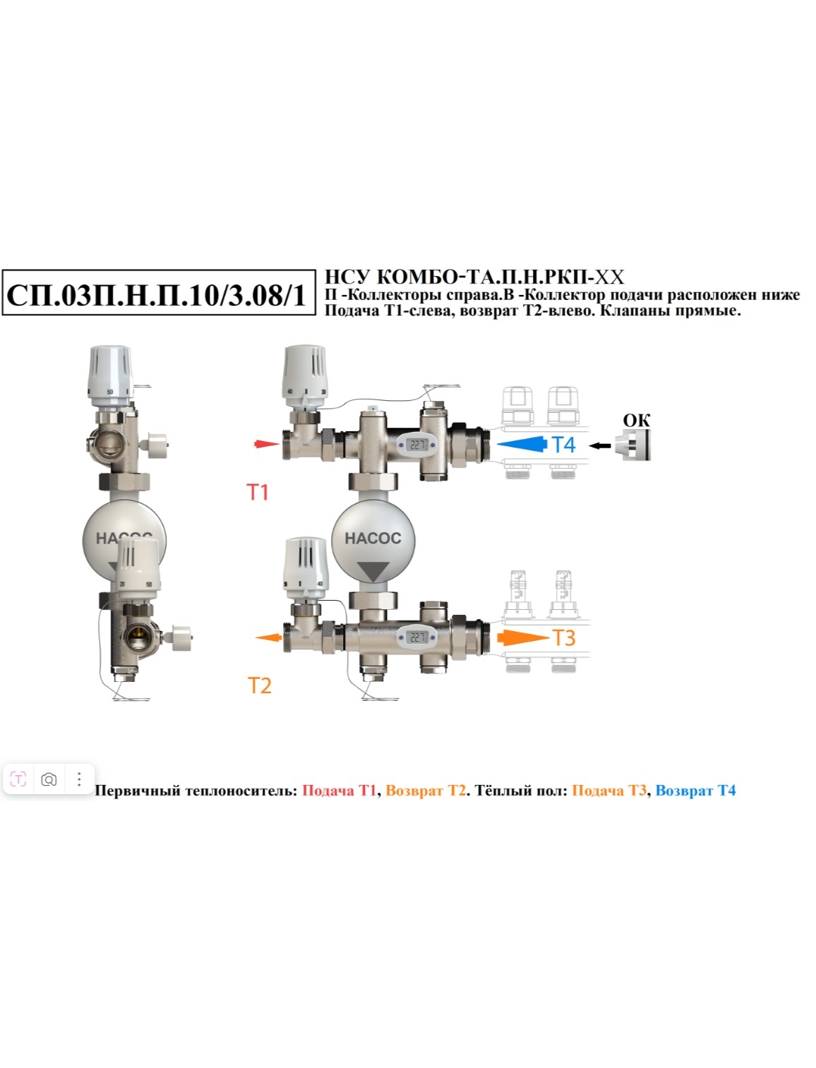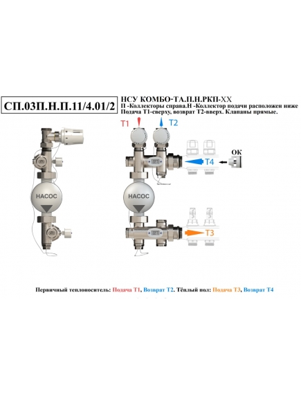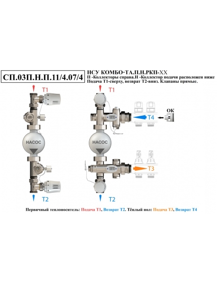 Насосно-смесительный узел НСУ КОМБО-ТА.П.Н коллектор для теплого пола подключается справа, подающий нижний