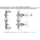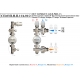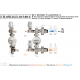 НСУ КОМБО-ТА-П снабжён регулирующими клапанами подачи (7) и возврата (8), через которые он сообщается с подающей и обратной линиями теплоснабжающей магистрали или котла. Клапаны снабжены соединителями с накидной гайкой. Оба блока оснащены защитными гильзами (9) для установки термодатчиков (12). Каждый клапан снабжён термостатической головкой (10), соединенной через капиллярную трубку (11) с выносным термодатчиком (12). Наружные резьбы на торцах блоков подачи и подмеса, предназначены для подключения распределительных коллекторов системы теплого пола. На лицевой и задней сторонах блоков реализованы резьбовые выводы с внутренней резьбой 1/4". На лицевой стороне через защитные гильзы (9) установлены термометры (13). В блоке подмеса, между защитной гильзой термодатчика (12) и циркуляционным насосом (3) встроен обратный клапан.