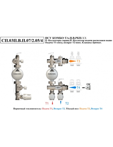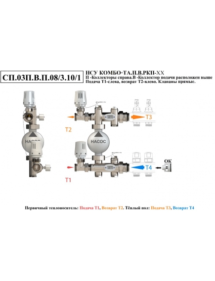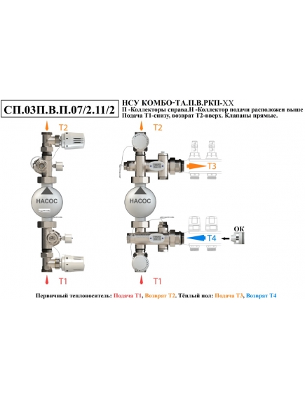 Насосно-смесительный узел НСУ КОМБО-ТА.П.В коллектор для теплого пола подключается справа, подающий верхний