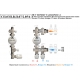 НСУ КОМБО-ТА-П снабжён регулирующими клапанами подачи (7) и возврата (8), через которые он сообщается с подающей и обратной линиями теплоснабжающей магистрали или котла. Клапаны снабжены соединителями с накидной гайкой. Оба блока оснащены защитными гильзами (9) для установки термодатчиков (12). Каждый клапан снабжён термостатической головкой (10), соединенной через капиллярную трубку (11) с выносным термодатчиком (12). Наружные резьбы на торцах блоков подачи и подмеса, предназначены для подключения распределительных коллекторов системы теплого пола. На лицевой и задней сторонах блоков реализованы резьбовые выводы с внутренней резьбой 1/4". На лицевой стороне через защитные гильзы (9) установлены термометры (13). В блоке подмеса, между защитной гильзой термодатчика (12) и циркуляционным насосом (3) встроен обратный клапан.