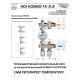 В основу работы НСУ КОМБО-ТА-П с боковым подключением положен последовательный тип смешивания теплоносителя, который наиболее благоприятен при подключении к отопительным котлам, критичным к низкой температуре входящего теплоносителя. Из НСУ КОМБО-ТА-П бп возвращается часть теплоносителя с температурой подготовленной для подачи в контуры тёплого пола.