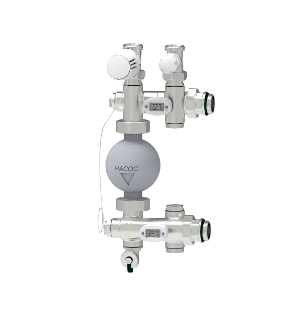 НСУ КОМБО-С снабжён двумя регулирующими клапанами; вход (7) и выход (8), через которые происходит рециркуляция первичного теплоносителя из источника тепла.