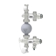 Клапаны присоединяются к НСУ через зажимы с накидной гайкой. Клапан входа (7) снабжается термостатической головкой (10), сообщающейся через капиллярную трубку (11) с выносным термодатчиком (12), располагаемым в защитной гильзе (9) блока подачи (1). Термоголовка на регулировочном клапане крепится накидной гайкой с резьбой М 30*1,5.