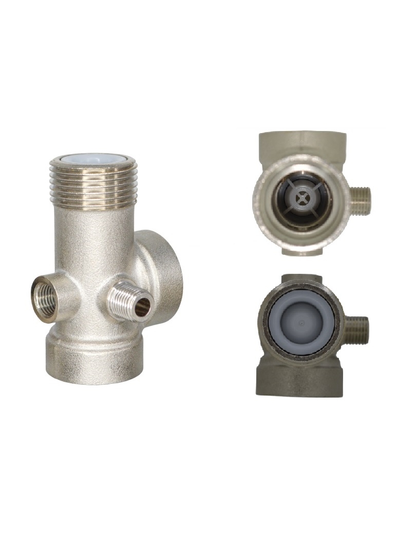 Штуцер имеет все необходимые резьбы для сборки узла автоматики для насоса: присоединения датчика сухого хода, который  используется в системах водоснабжения для предотвращения работы насоса без воды, реле давления, манометра, трубопроводов, гидроаккумулятора, насоса. Встроенный обратный клапан предотвратит возврат воды обратно в насос, убережет его от поломок и потери давления в системе.