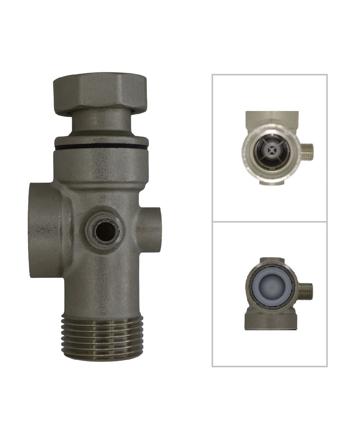 Штуцер имеет все необходимые резьбы для сборки узла автоматики для насоса: присоединения датчика сухого хода, который  используется в системах водоснабжения для предотвращения работы насоса без воды, реле давления, манометра, трубопроводов, гидроаккумулятора, насоса. Встроенный обратный клапан предотвратит возврат воды обратно в насос, убережет его от поломок и потери давления в системе.
