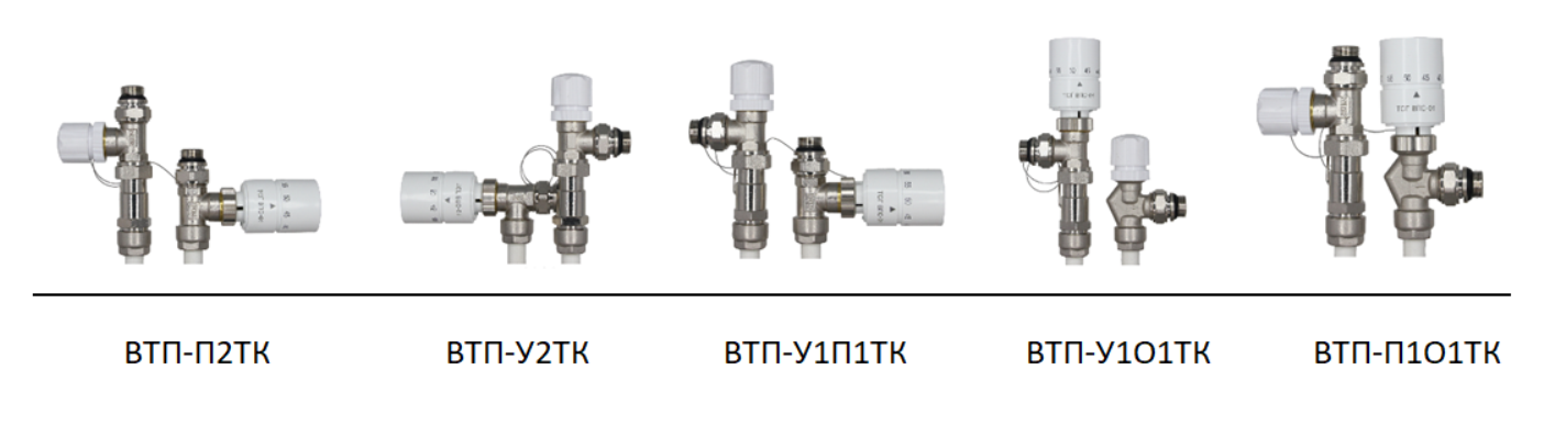 Комплект состоит из двух регулирующих клапанов с наружной резьбой 3/4" с геометрией соответствующей стандарту «Евроконус». Клапаны снабжены адаптерами на 1/2" с самоуплотняющимися элементами. В комплекте использована оригинальная термоголовка ТСГ ВПС-01.