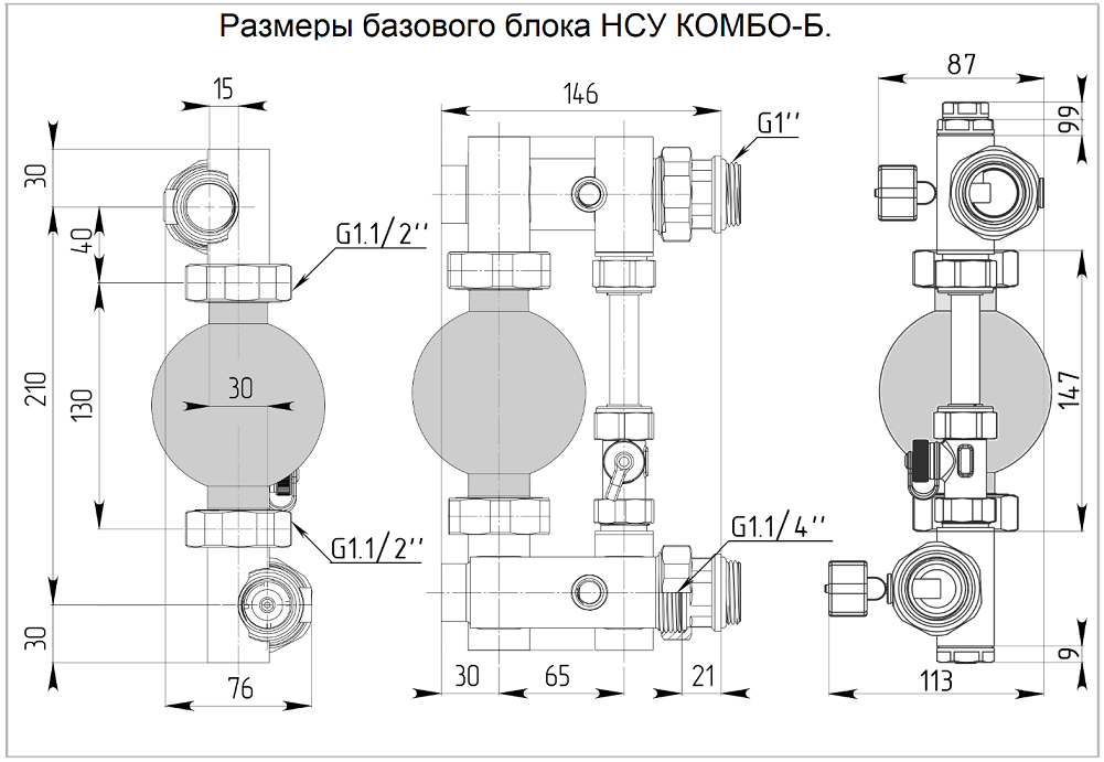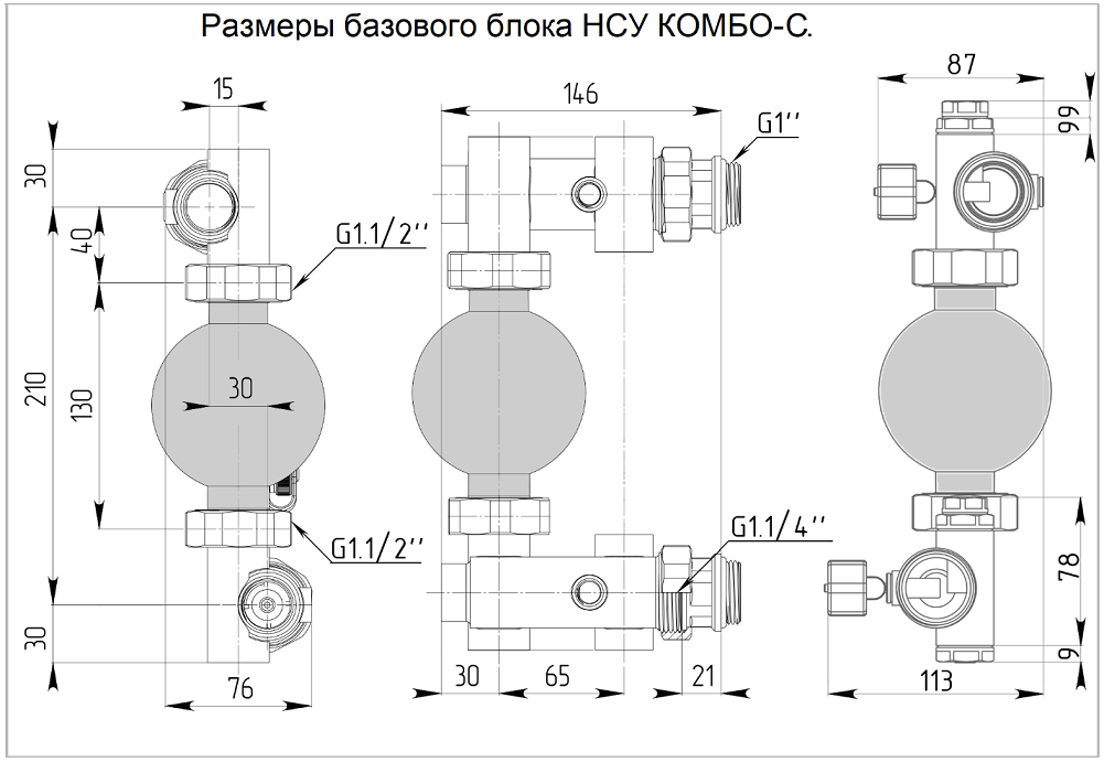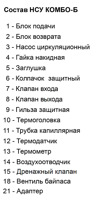 НСУ КОМБО-С и КОМБО-Б позволяют компоновать комбинированные системы отопления (радиаторы + тёплый пол) располагая последовательно коллекторную группу радиаторного отопления, за ней НСУ КОМБО с боковым подключением и после него коллекторную группу тёплого пола.